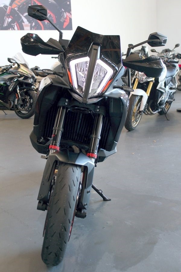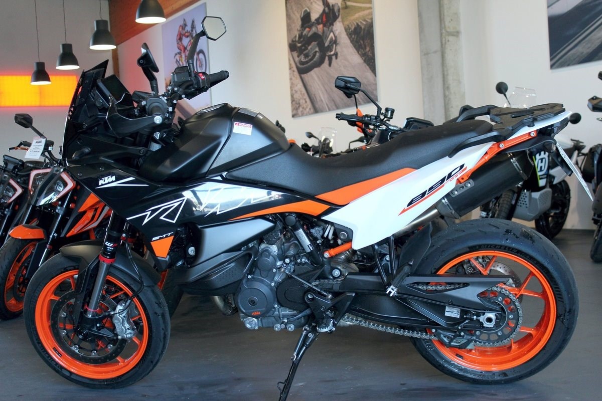 Wer sich gedacht hat, die neue 8980 SMT wäre zwischen den 890 Adventure- und den 890 Duke-Modellen eine unnötige Nebenrolle spielen, hat sich vermutlich geirrt. Selten zuvor hat ein Motorrad so sehr das geschafft, was es nach außen hin mit seiner Optik suggeriert. Die 890 SMT will also sportlich bewegt werden - und kann das auch besonders gut. Allerdings sind mit der Verkleidung, dem gut gepolsterten Sattel und der aufrechten Sitzposition auch weite Strecken gut zu meistern. Die Bremse packt ordentlich zu und das Handling fühlt sich auch im engen Winkelwerk äußerst agil an. Die Devise der 890 SMT lautet eindeutig Reisen UND Rasen!