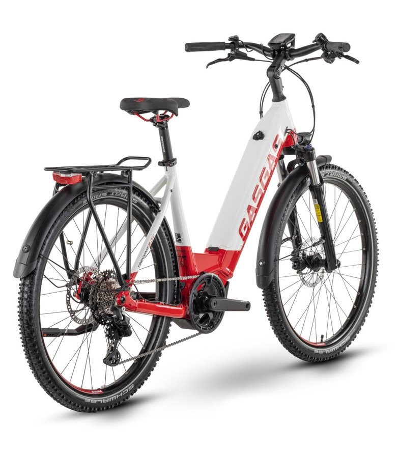 GASGAS G-Trekking 2.0 Modell 2023 sofort verfügbar Größe bitte anfragen auch als Herren erhältlich SPEZIFIKATIONEN LAUFRADGRÖSSE: 27.5 /584mm RAHMEN: 27.5 , Alloy 6061, integrierter Akku, Boost GABEL: SR SUNTOUR Mobie-A32 NLO, Feder, 75 mm, tapered MOTOR: Yamaha PW-ST, 250 W, 70 Nm AKKU: 630 Wh, 36 V DISPLAY: Yamaha Display C, LCD-Display, Micro-USB ZUL. FAHRZEUGGESAMTGEWICHT: 130 kg ANHÄNGERFREIGABE: JA BEDIENEINHEIT: Yamaha C KETTE: KMC e9S SATTEL: GASGAS Ergo MOTOR: Yamaha PW-ST, 250 W, 70 Nm HINTERRADBREMSE: Tektro Vela, 2-Kolben, Hydraulische Scheibenbremse DISPLAY: Yamaha Display C, LCD-Display, Micro-USB RAHMEN: 27.5 , Alloy 6061, integrierter Akku, Boost VORDERRADBREMSE: Tektro Vela, 2-Kolben, Hydraulische Scheibenbremse SPEICHE: Mach1, Edelstahl REIFEN: Schwalbe Smart Sam, Performance, 54-584, 27.5x2.1 GRIFFE: GASGAS Ergo, Schraubgriffe LENKER: GASGAS Riser 31,8 mm, 700 mm, Sweep: 9 °, Rise: 12 mm SATTELSTÜTZE: GASGAS, 31,6 mm, 350 mm, Patent VORBAU: GASGAS 31.8, Ahead, einstellbar SCHEINWERFER: Herrmans MR4, 120 lm, Standlicht RÜCKLICHT: AXA Blueline E, Standlicht SCHALTHEBEL: Tektro SL-M350R SCHALTWERK: Tektro RD-T350, 9-S LADEGERÄT: Simplo Schnellladegerät, 4 A VORDERRAD: Rim: Mach 1 TRUCKY 30, geöst / Hub: GASGAS DA210F, 6-Loch, Steckachse HINTERRAD: Rim: Mach 1 TRUCKY 30, geöst / Hub: GASGAS DA210R, 6-Loch, 12x148 mm, Steckachse, HG GEPÄCKTRÄGER: GASGAS Tour, MIK, 15 kg belastbar, Ja ZAHNKRANZ: Tektro CS-M350, 11-46 T KETTENBLATT: GASGAS, 44 T GABEL: SR SUNTOUR Mobie-A32 NLO, Feder, 75 mm, tapered KURBELARM: GASGAS EC40, Aluminium geschmiedet, JIS AKKU: 630 Wh, 36 V GEWICHT: 26.4 kg STÄNDER: Eurofender Tempo PEDALE: GASGAS, Aluminium
